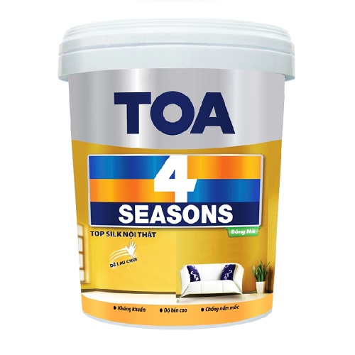 Sơn nước nội thất Toa Seasons Bóng Interior Top Silk Sheen được chế tạo từ nhựa nhũ tương, với công nghệ sơn nước cao cấp có độ bóng cao, chất lượng tốt, độ phủ cao, bề mặt nhẵn mịn, có khả năng chống nấm mốc cao, có màu sắc bền đẹp. Công thức không chứa Chì, Thuỷ ngân, Phoóc-môn, APEO... an toàn cho sức khoẻ và môi trường.