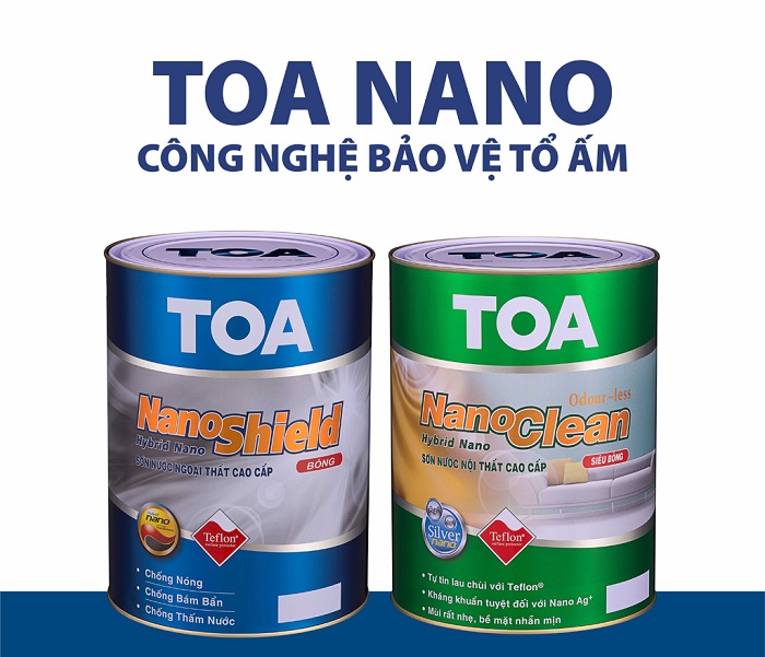 Công nghệ Nano trong sơn liên kết màng sơn chặt chẽ, bền màu và độ bám cao hơn. Hạn chế tối đa khả năng bong tróc, chuyển màu hay ố vàng theo thời gian bởi khả năng chống ẩm, kháng khuẩn, chống bám bẩn. Bảng màu TOA Nano có khoảng 2.000 màu sơn cùng với 2 bề mặt bóng, bóng mờ phù hợp từng mục đích sử dụng, sẽ cho gia chủ có một cái nhìn toàn diện, nhiều phương án lựa chọn tối ưu cho một cuộc sống trong ngôi nhà mới gặp nhiều may mắn, thăng hoa.